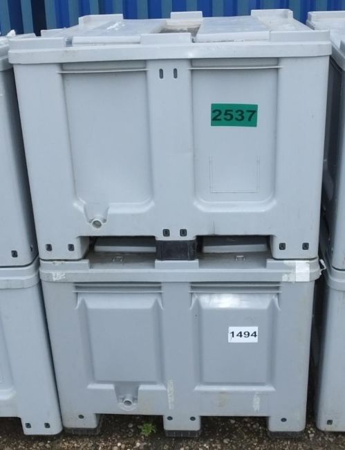 2x Plastic Shipping Cases Grey L1220 x W1020 x H800mm - with lids
