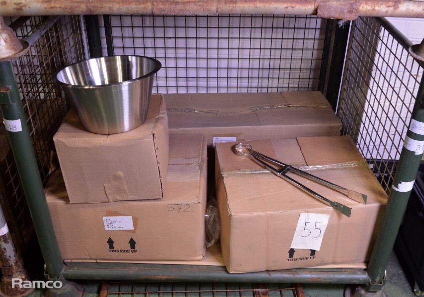 48x Stainless Steel Taper Mixing Bowls, 96x 21in Steak Tongs