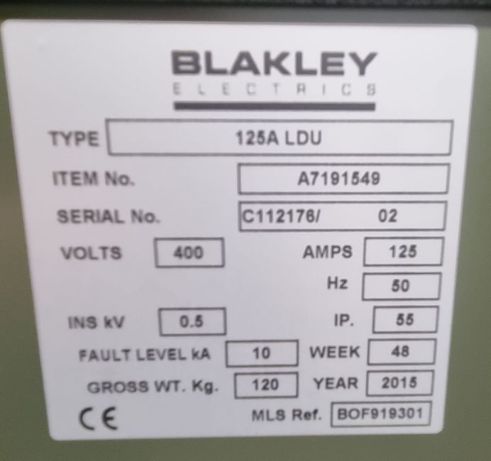 Blakley LDU Distribution Unit A7191549, 400V, 50Hz - Serial No.C112176 02 Dimensions L93 x W60 x H132cm 120kg