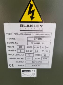 Blakely FEPS-LAPS 6W GIU 7xLAPDS Sockets A7191551, 400V, 50Hz - Serial No.W108641 03 Dimensions L130 x W80 x H86cm