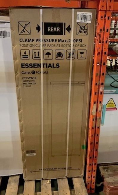 37x Essentials CTF55W18 tall freezer - white - these are unused and boxed but have been in storage for around 2 years - will require an artic for collection - collection location: Castleford, WF10 5QH