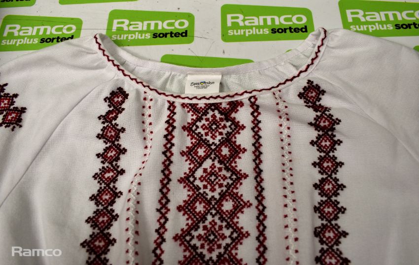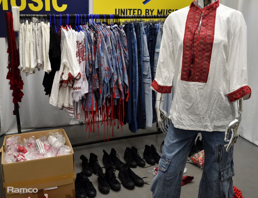 Outfits worn by backing dancers during Kalush Orchestra's Grand Final opening performance - ‘Voices of a New Generation’ featuring their song ‘ Stefania’ - includes: