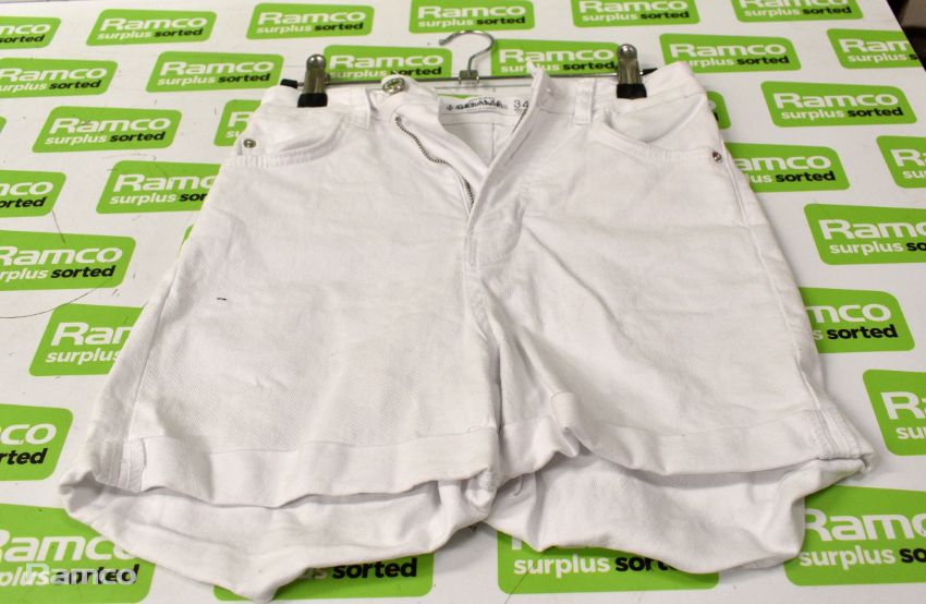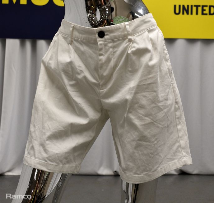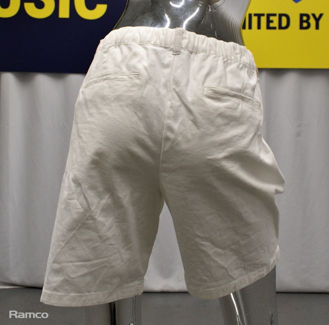- 16 x white shorts – 2x28, 3x32, 2x34, 1x36 (inch waist) 2x size 6, 1x8, 3x10, 1x14, 1x16