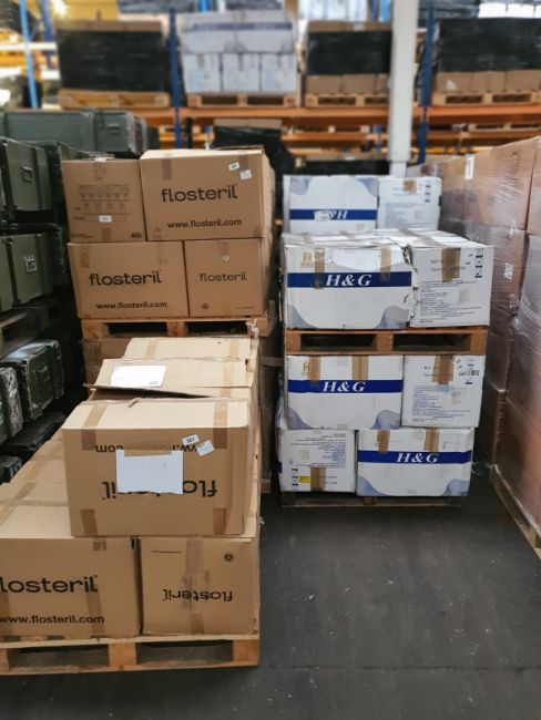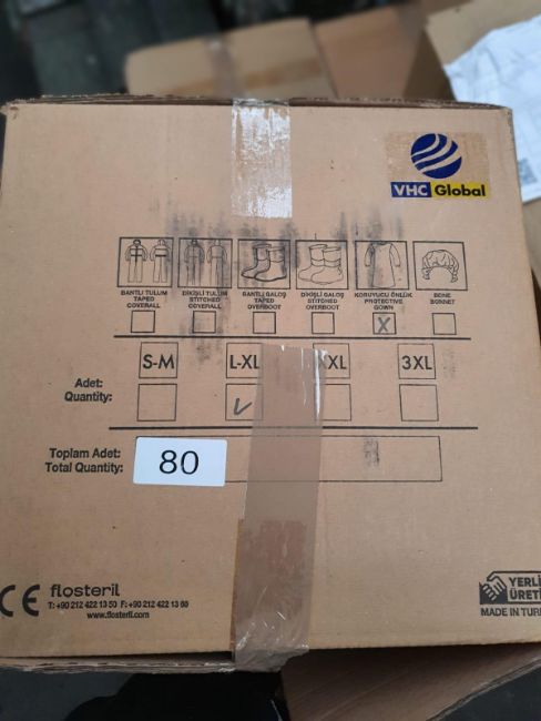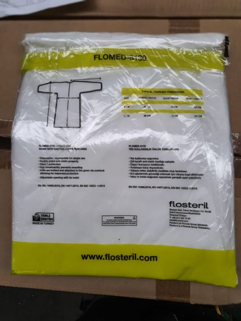 2x boxes Flosteril VHC global Flomed-8130, single use surgical gown - Size L / XL - Out of Date - 80 per box