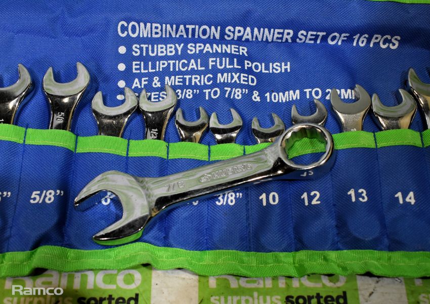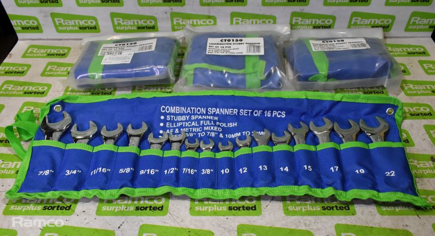 4x 16 Piece CTO150 combination stubby spanner sets - 10mm-22mm & 3/8-7/8 inch
