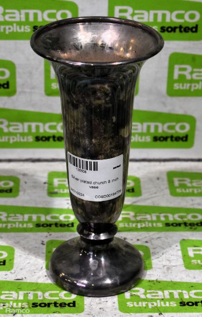 Silver plated church 8 inch vase