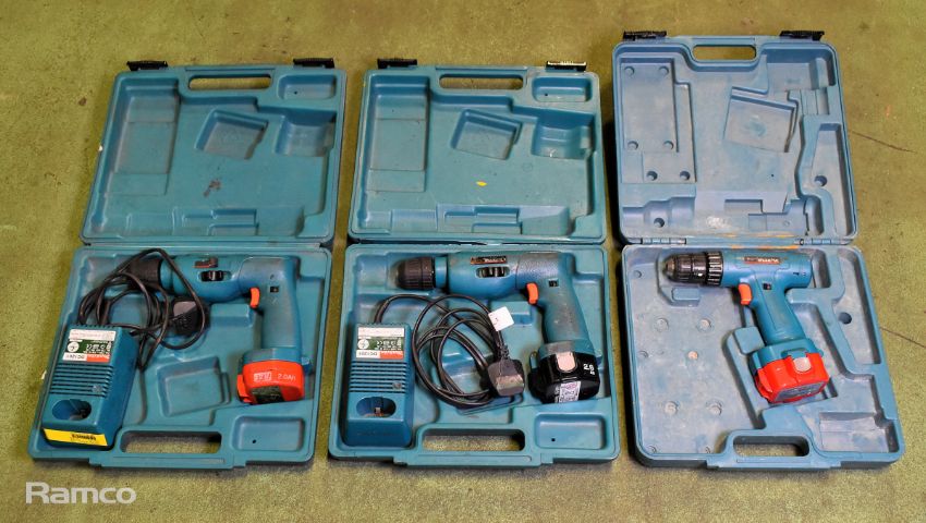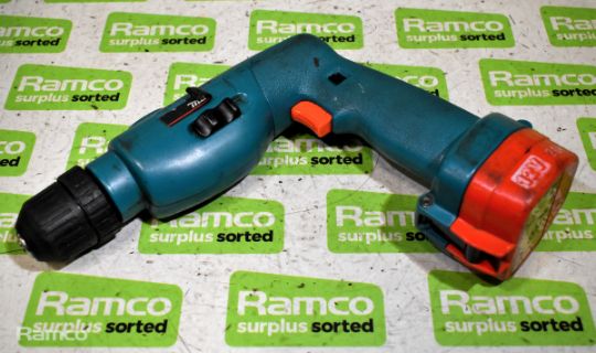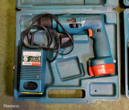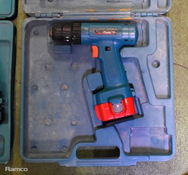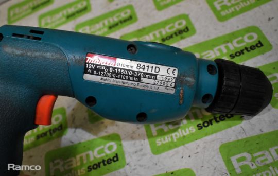 2x Makita 8411D cordless drills - DC1201 charger - 1x 12V battery and case