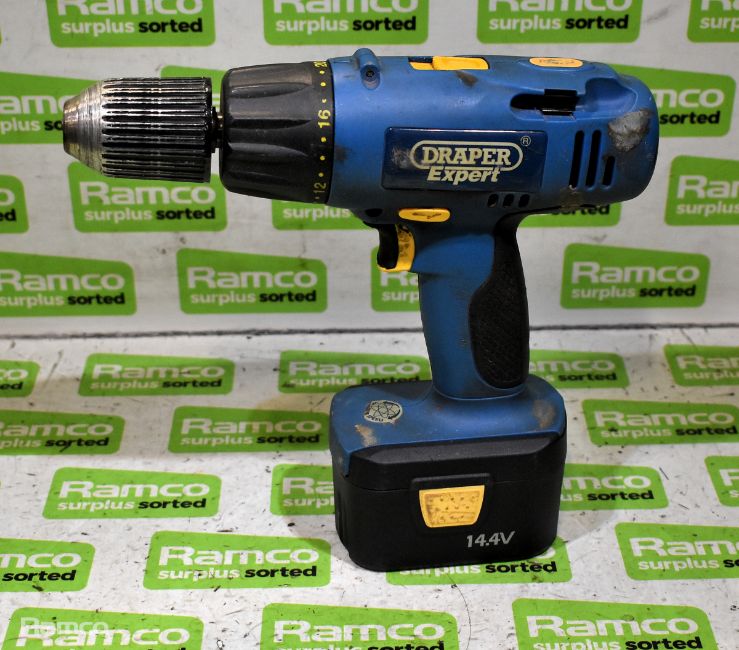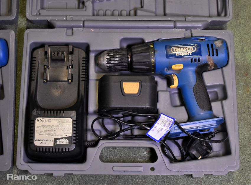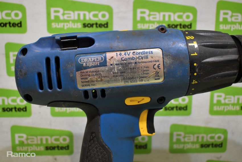 Draper Expert CHD14VK cordless combi-drill with C141PLUS battery charger, 1x 14.4V battery and case
