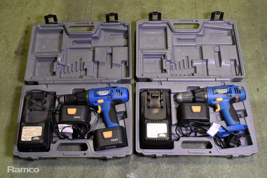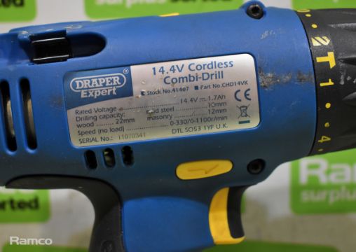 Draper Expert CHD14VK cordless combi-drill with C141PLUS battery charger, 2x 14.4V batteries and case