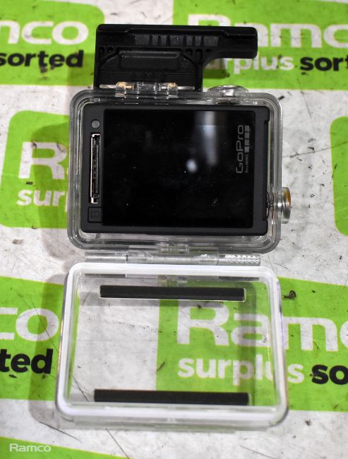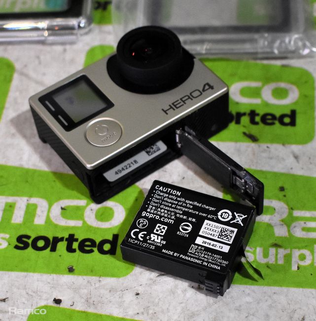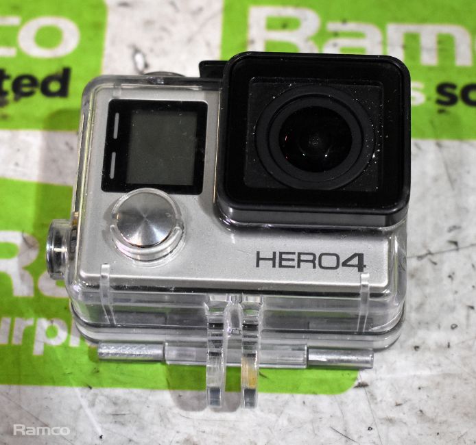 GoPro Hero4 silver camera with housing case and spare housing front cover