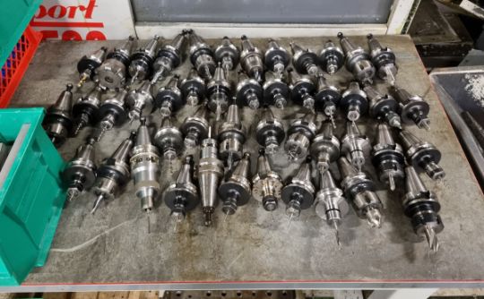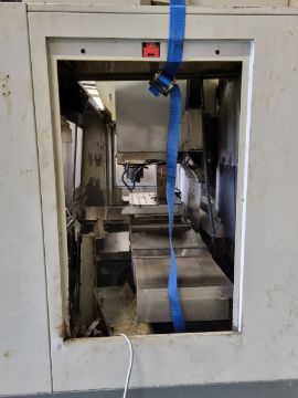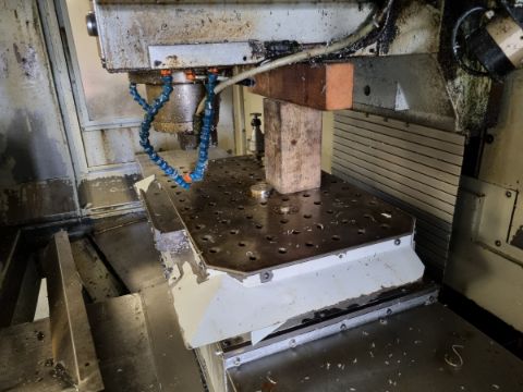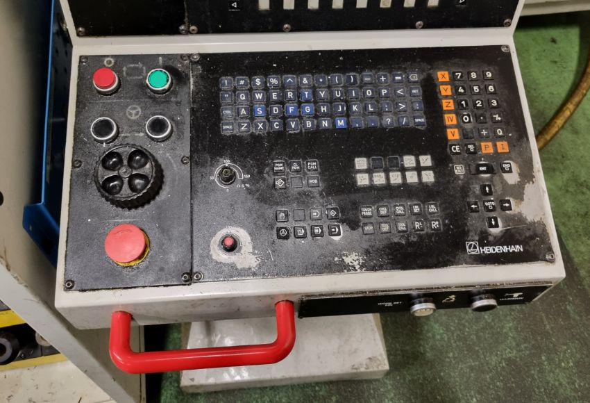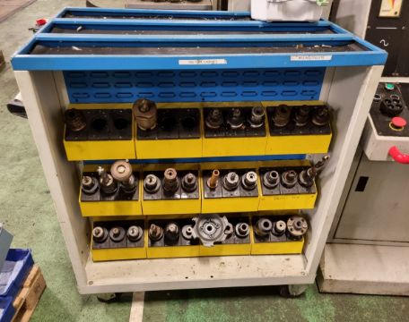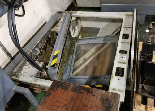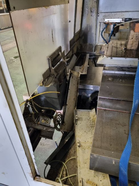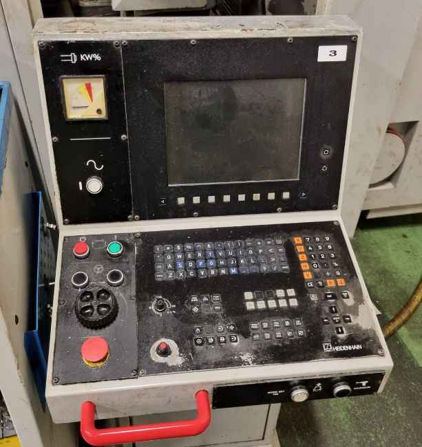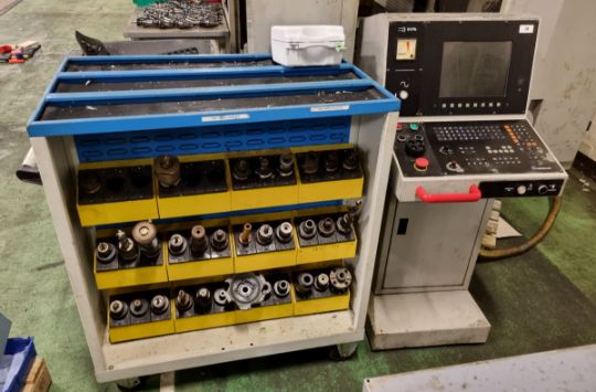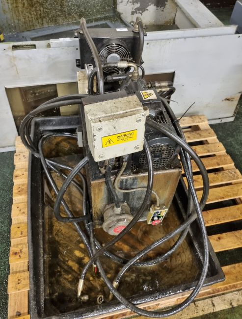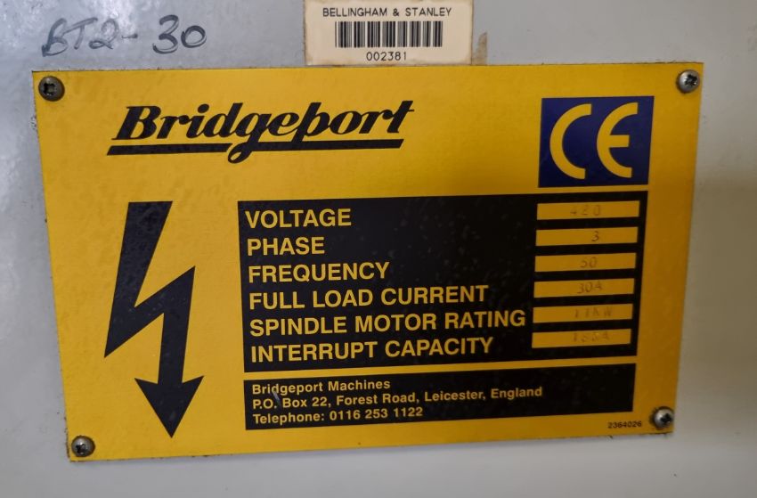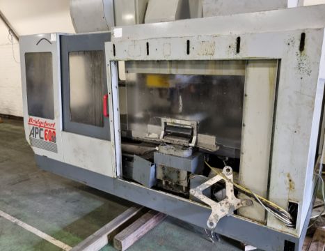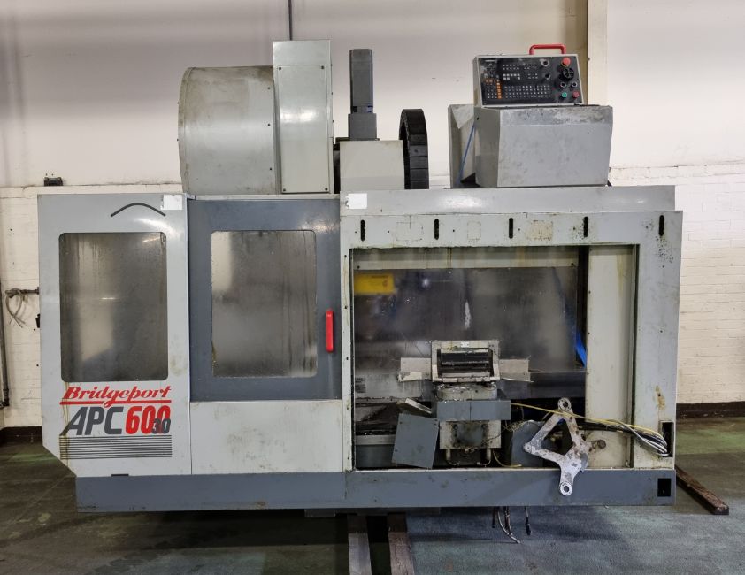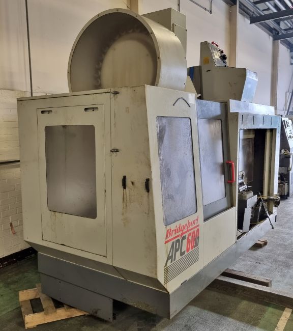 Bridgeport APC 600 CNC vertical machining centre with swarf conveyor, swarf skip, work bench and tooling - 420V