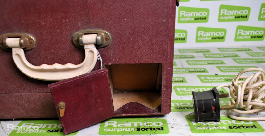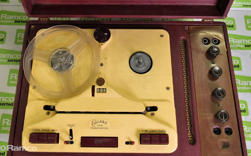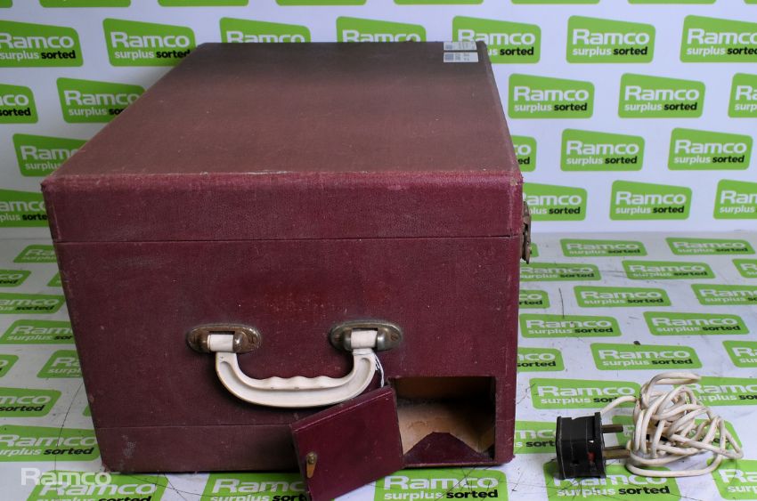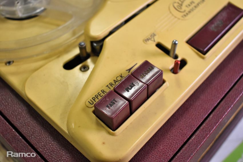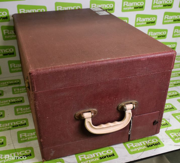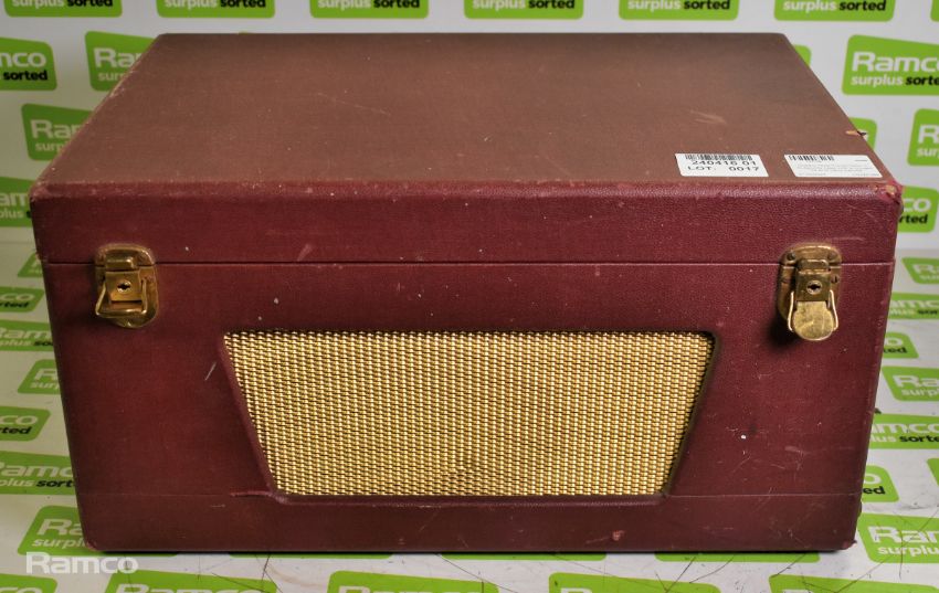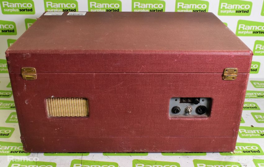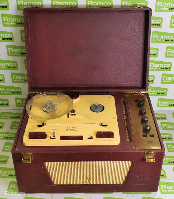 Collaro Tape Transcriptor in burgundy case with a hinged lid and carry handle