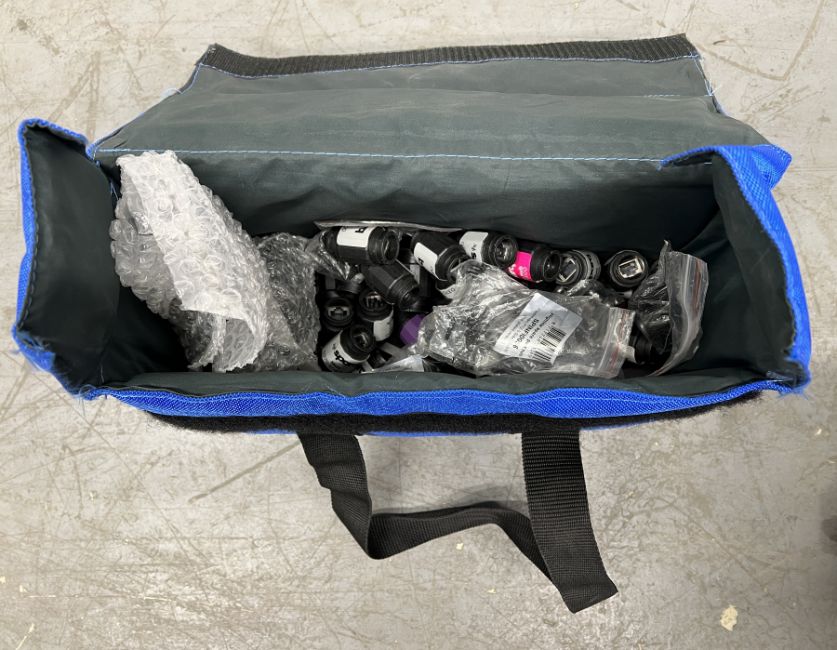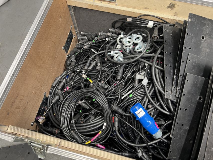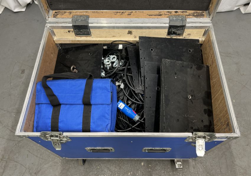 Pixelmesh LED video wall accessories - power looms, data links, data barrels and back plates with flight case - W 980 x D 650 x H 885mm