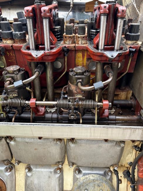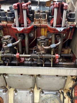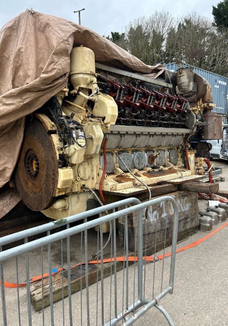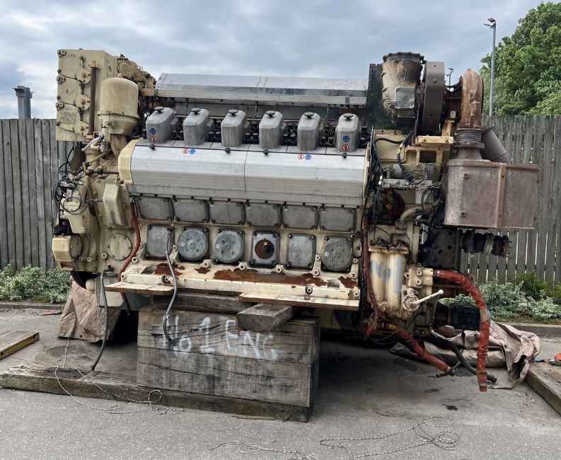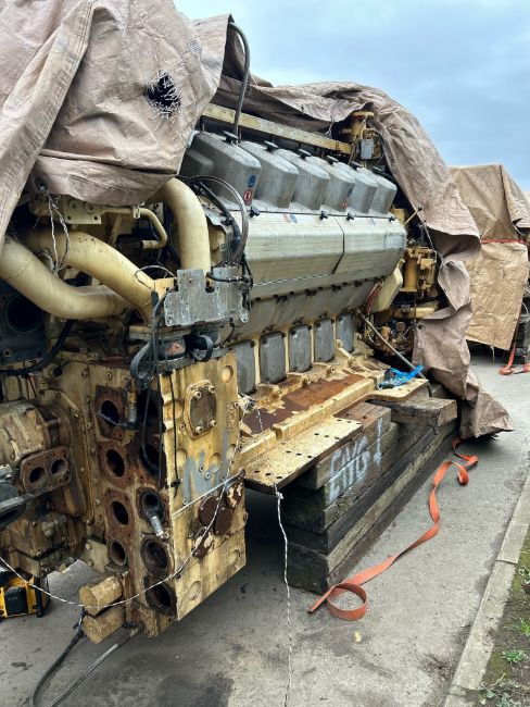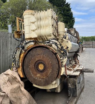 The Wartsila engine used a mechanic / electrical governor and has electrical services attached for exhaust temps, coolant flow / temps, oil sensors and switches etc these all come down to a connection point. The outgoing cables from the engine to the vessel have been cut.