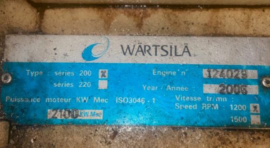 The Wartsila 200 Series V12 Diesel engine S/N 124029 was manufactured in late 2006 and installed into a Navy vessel which came in to service years later around 2009.