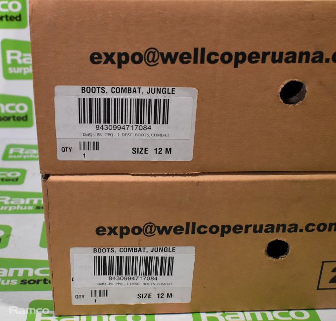 2x Pairs of Wellco Peruana Jungle combat boots - Black - Size 12M - New