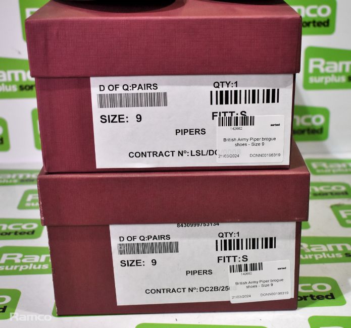 2x Pairs of British Army Piper brogue shoes - Size 9S