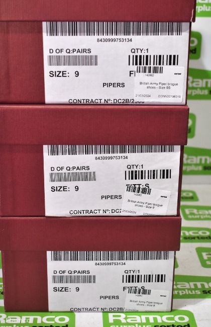 3x Pairs of British Army Piper brogue shoes - Size 9S
