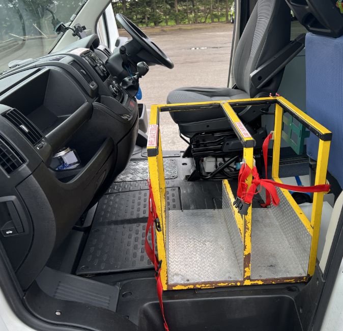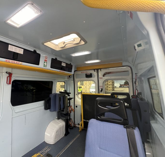 5 folding seats plus wheelchair/stretcher Unwin tracks