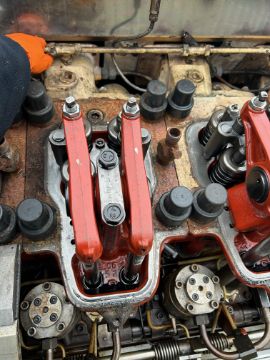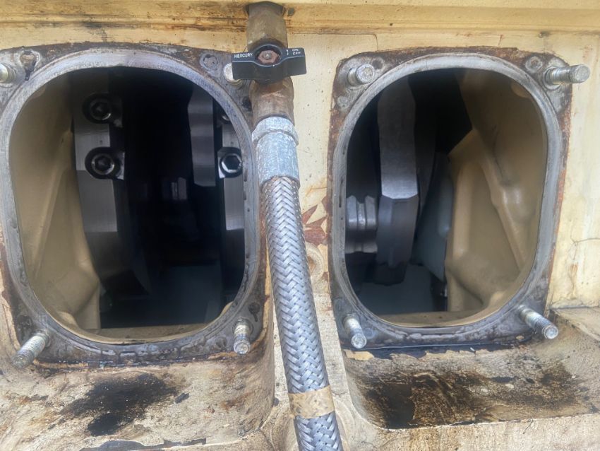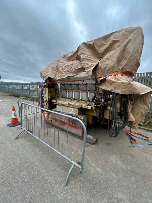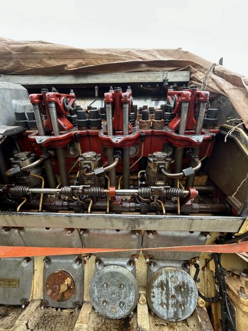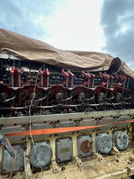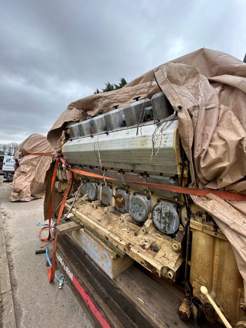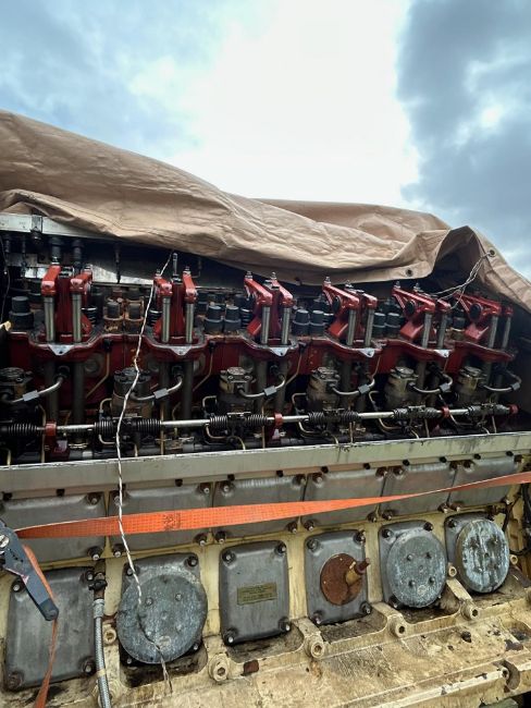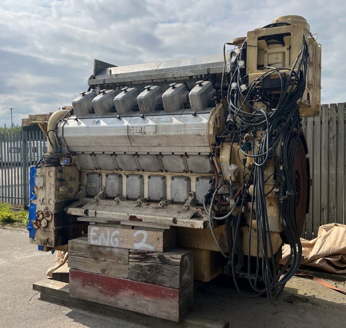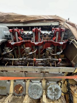 The main engine is complete what we can see from an inspection of the covers being removed, but both turbo chargers are missing and have been removed at the exhaust.