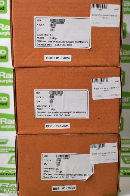 3x Pairs of British Forces service shoes - Black - Size 6L