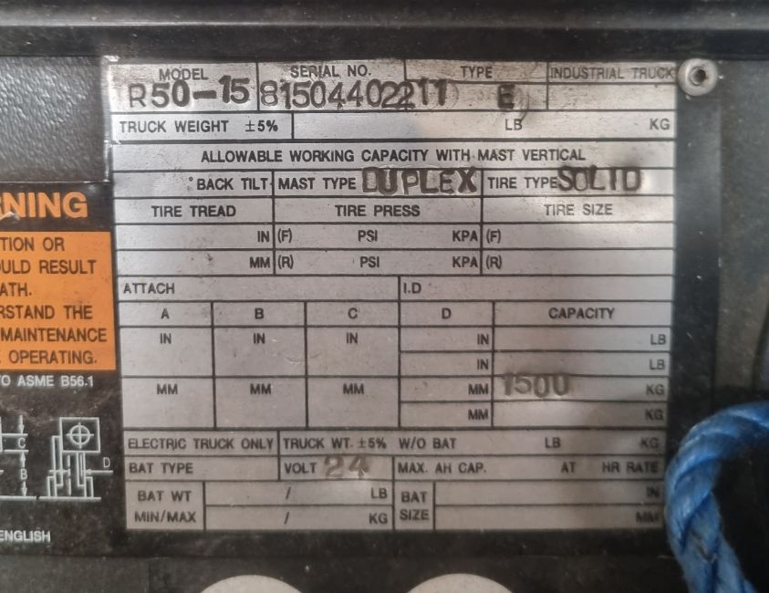 Still R50-15 forklift - DOM 2000 - approx 4400 hours with Exide charger.