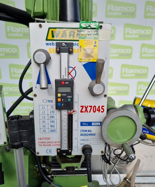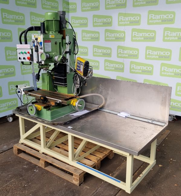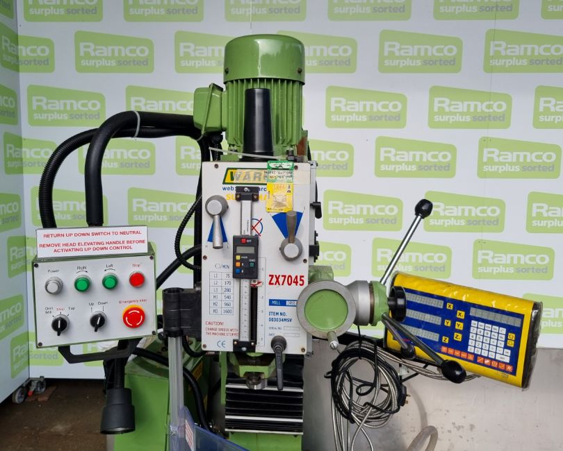 Warco Super Major ZX7045 milling drilling machine on stainless steel topped workbench