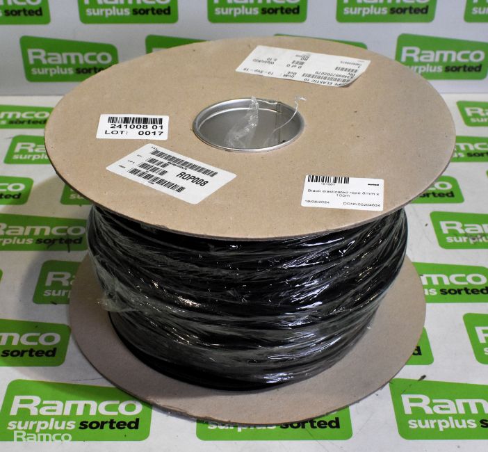 Black elasticated rope 8mm x 100m