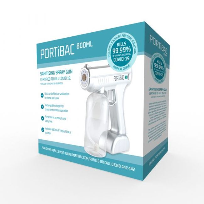 8x Portibac hand sanitiser spray guns with carry case - 800ml - silver