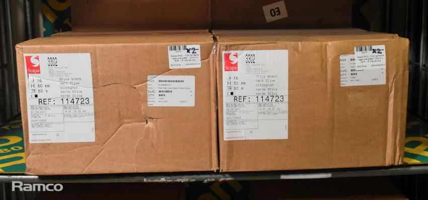 4x boxes of Scapa 3302 - Cloth adhesive tape olive green - 50mm x 50M - 16 rolls per box