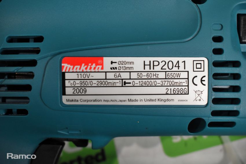 Makita HP2041 110V electric drill in plastic storage case
