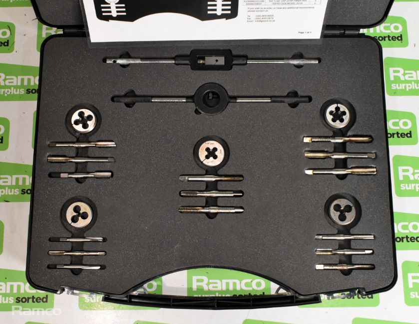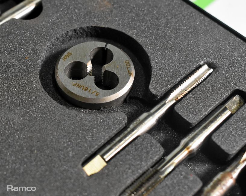Gleave Imperial UNF tap and die set in foam padded storage case - 1/4 inch to 1/2 inch