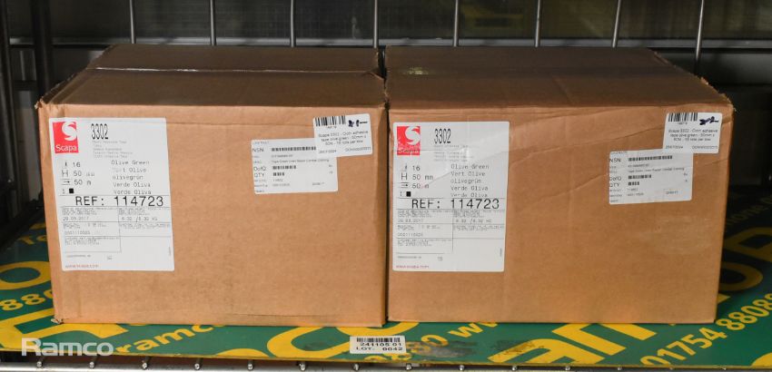 2x boxes of Scapa 3302 - Cloth adhesive tape olive green - 50mm x 50M - 16 rolls per box