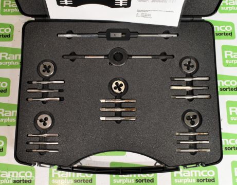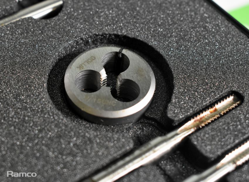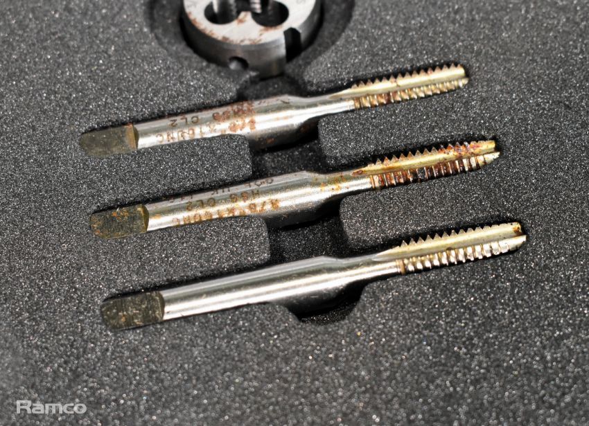 Gleave Imperial UNC tap and die set in foam padded storage case - 1/4 inch to 1/2 inch