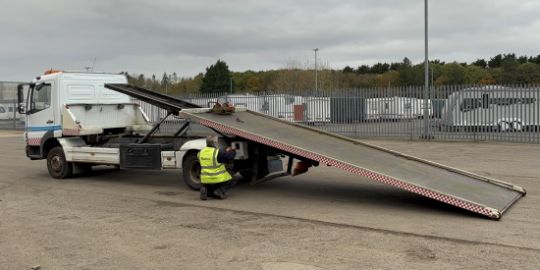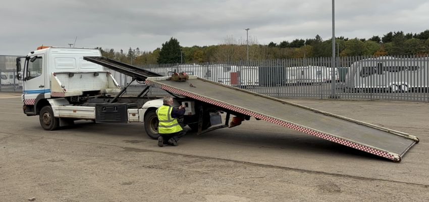 Mercedes Atego 7.5T tilt / slide recovery vehicle - body unloads flat to floor for loading (see video attached to the lot)