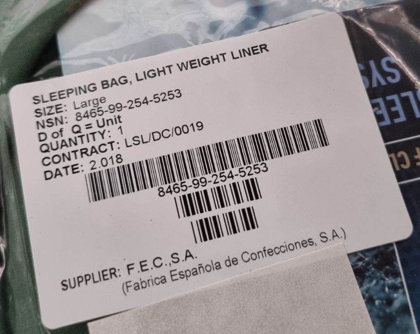 16x FESCA lightweight sleeping bag liners - size large - NSN 8465-99-254-5253