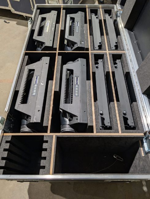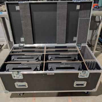 Set of 4x SGM P6 LED IP flood in flightcase with Omega brackets, 4x barndoors & 16A T line connectors. Bought 2021. Full working order. Serviced and PAT tested.