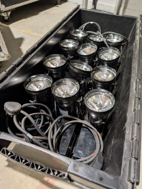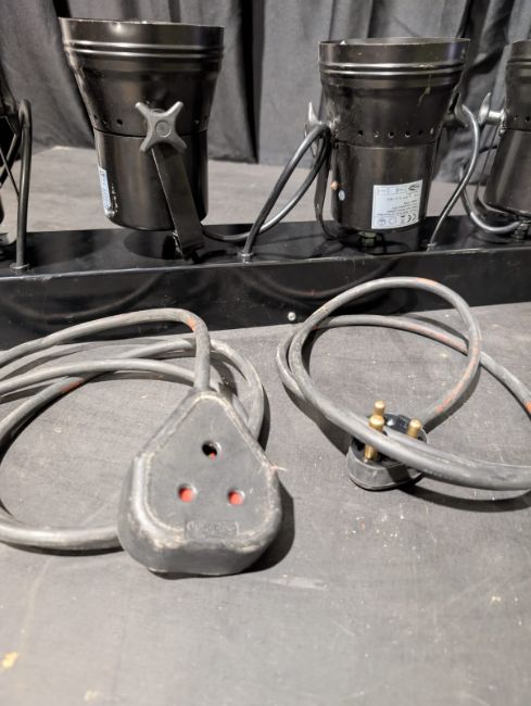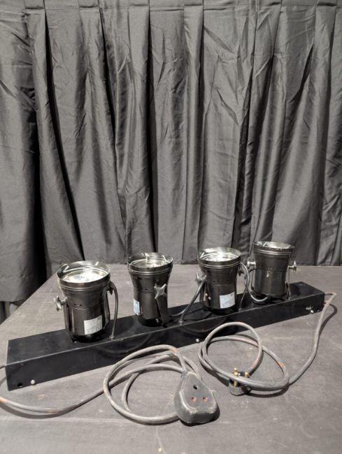 Set of 3x 4-Way Pinspot Bar fitted with 15 Amp connectors. Full working order. Serviced and PAT tested.