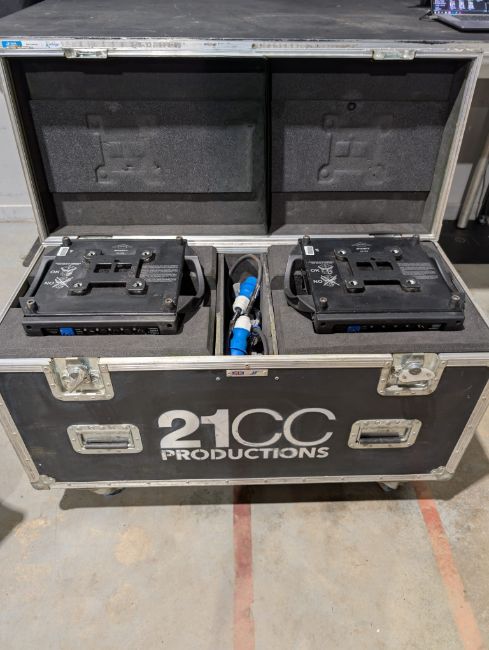 Set of 2x Clay Paky Sharpy moving light including flightcase with 16A/Powercon cable and Omega brackets. Full working order. Serviced and PAT tested.