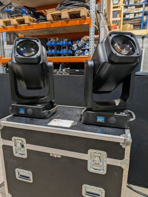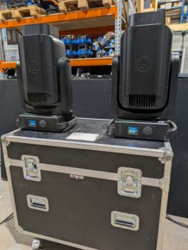 Set of 2x Ayrton Cobra IP65 laser source moving light in flightcase with 16A to True1 & clamps. Bought in 2022. Full working order. Serviced and PAT tested.