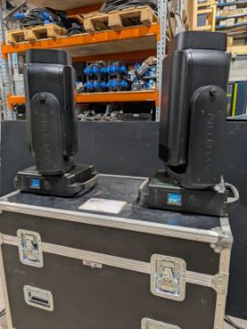 Set of 2x Ayrton Cobra IP65 laser source moving light in flightcase with 16A to True1 & clamps. Bought in 2022. Full working order. Serviced and PAT tested.