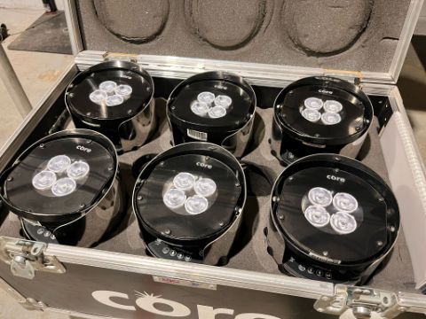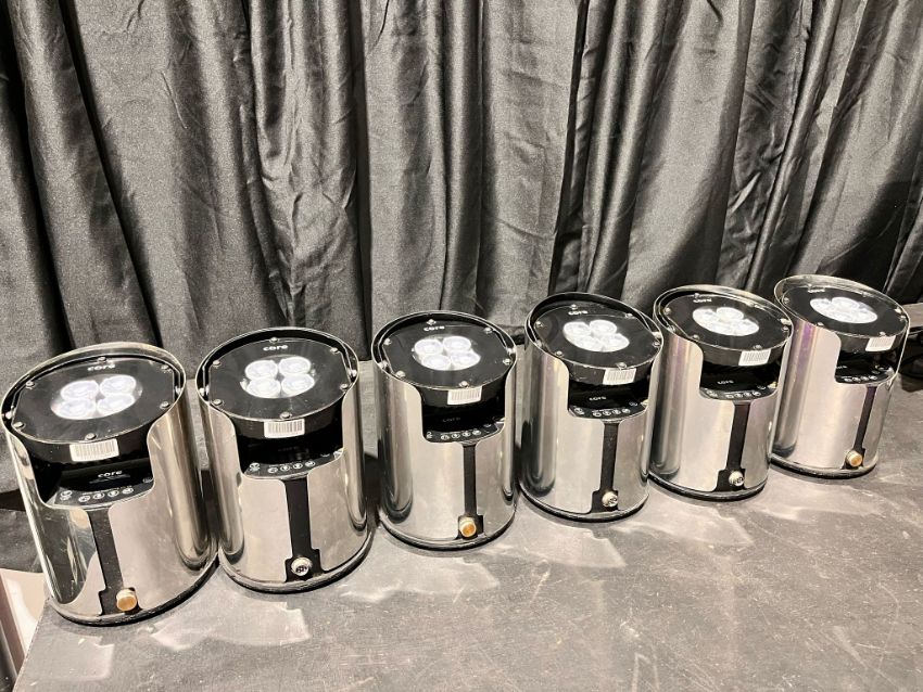 Set of 6x Core Colourpoint MKII LED IP uplighter in charging flightcase. Full working order. Serviced and PAT tested.