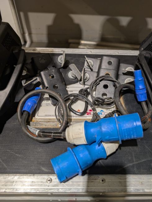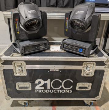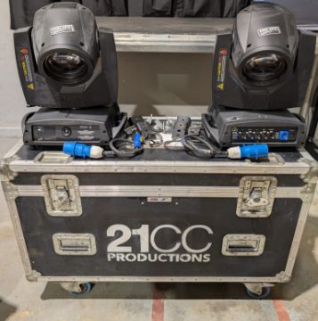 Set of 2x Clay Paky Sharpy moving light including flightcase with 16A/Powercon cable and Omega brackets. Full working order. Serviced and PAT tested.