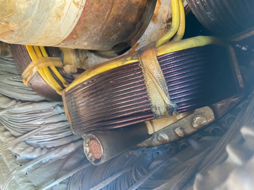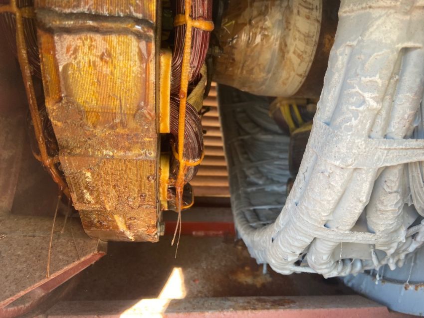 The generator looks complete, with engine oil still In the sump which looks clean with no contamination & engine bars over freely.