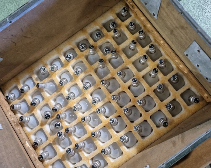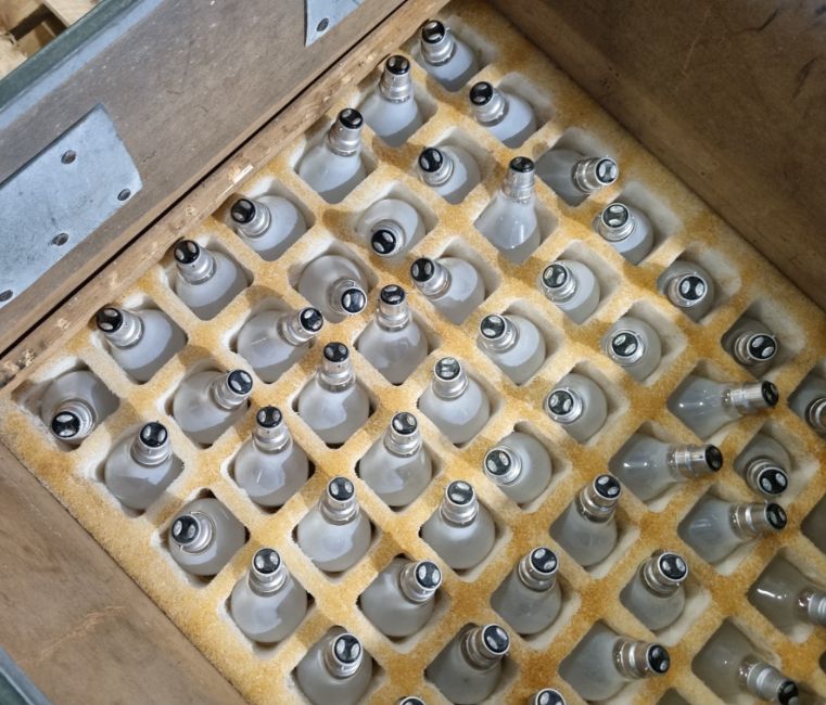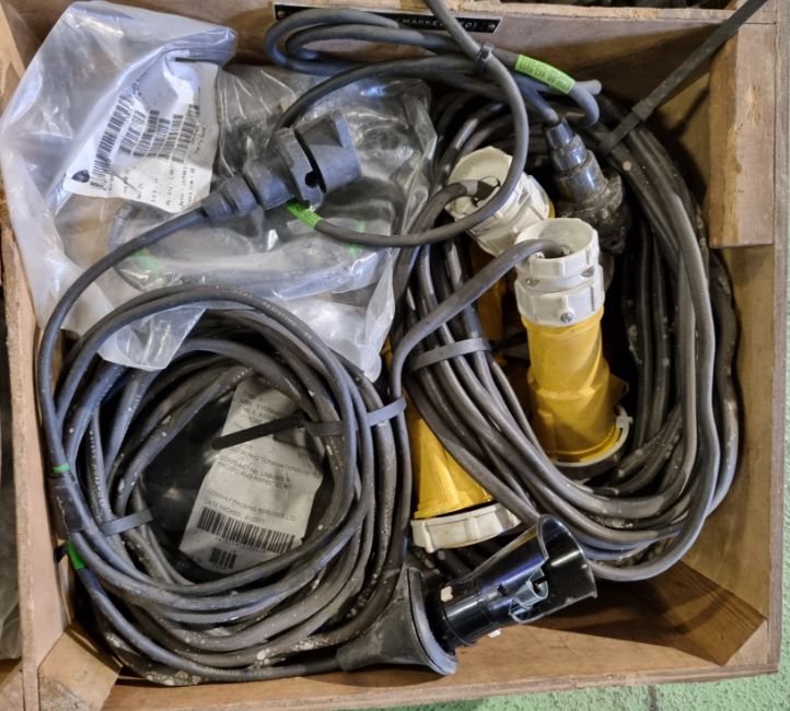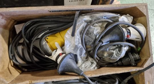 Field 16 AMP lighting set cables & light bulbs in a wooden carry case - L 740 x W 860 x H 410mm