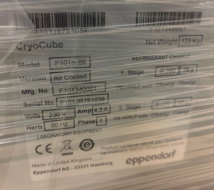 Eppendorf CryoCube F101h ultra low temperature freezer - W 940 x D 630 x H 840mm