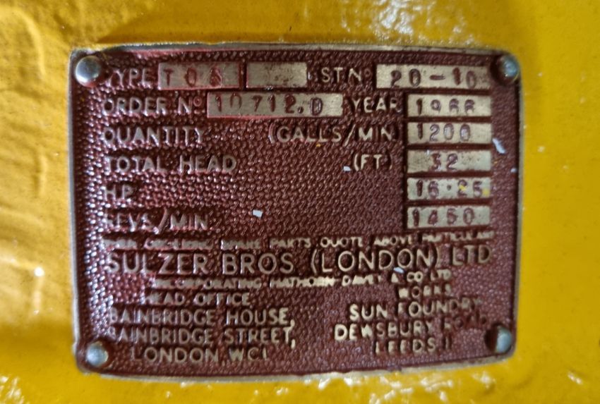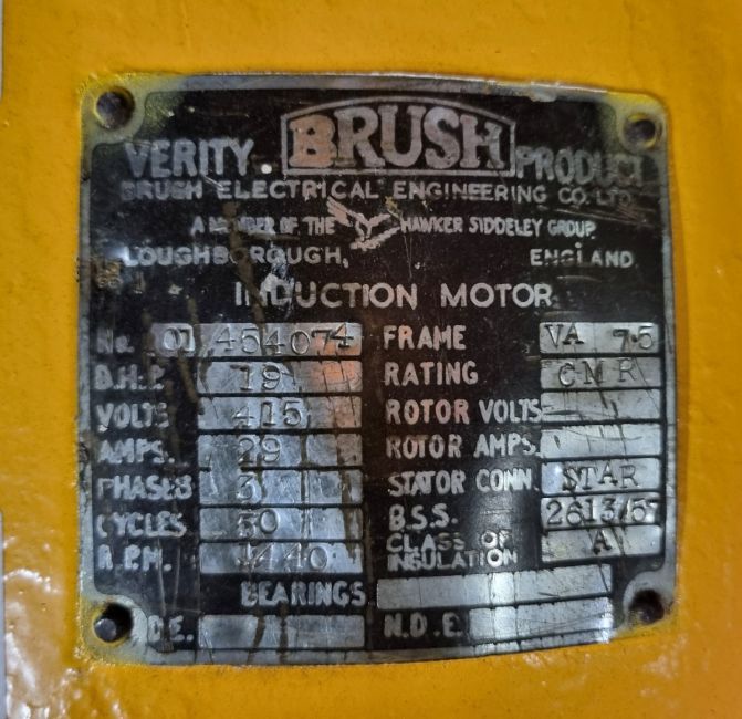 Brush Electrical Engineering Co Ltd VA75 3 phase induction motor with Sulzer Bros Ltd TOS water pump