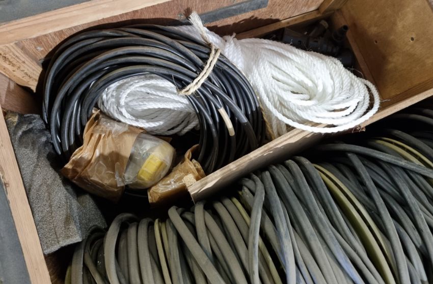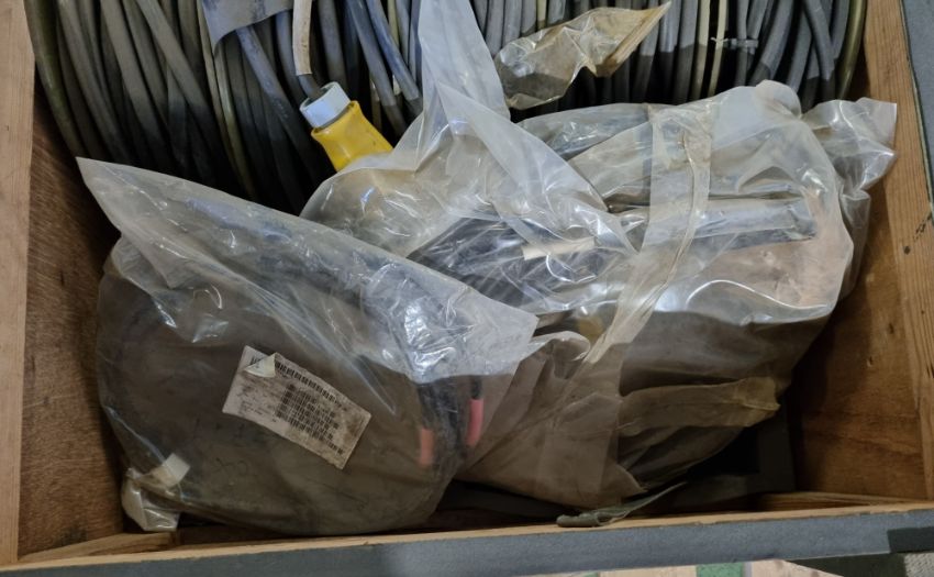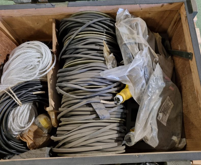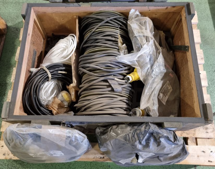 Field 16 AMP lighting cable set in a wooden carry case - L 850 x W 650 x H 380mm