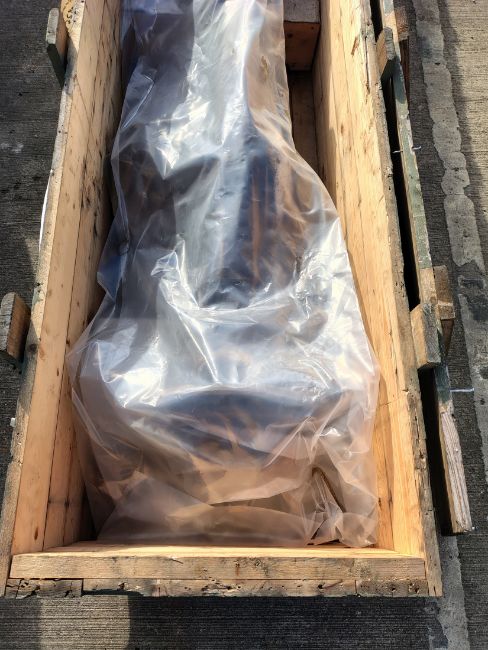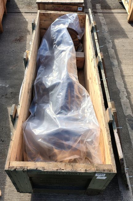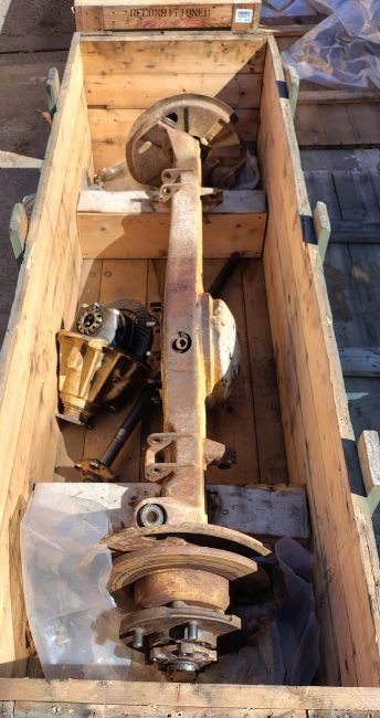 Land Rover RWMIK+ rear axle assembly with brake discs, pads and calipers in wooden storage crate