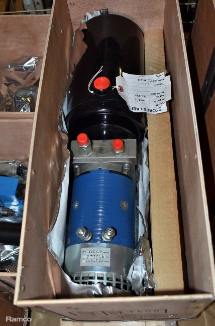 Vehicle spares - Motor pump unit 3/8 in BSP fittings, light assembly RH/LH unit, CETOP 3 valve stack assy, jacking point, and more